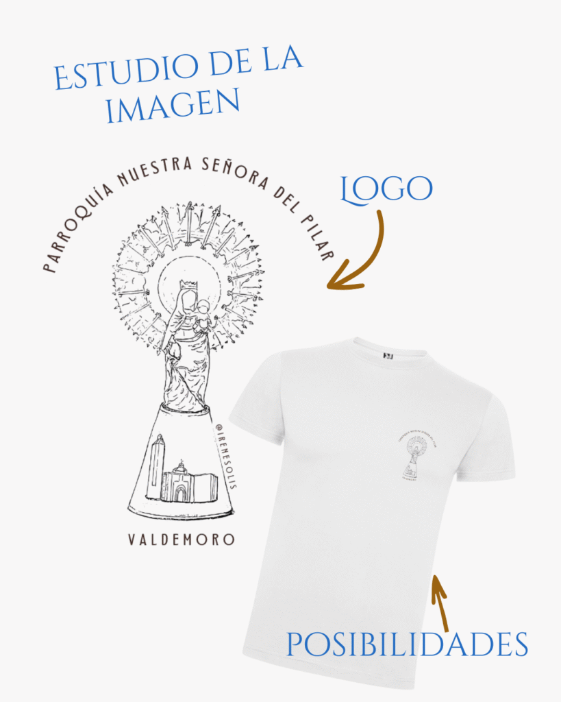 La colaboración con la Parroquia de Nuestra Señora del Pilar de Valdemoro nació de una pregunta sencilla: ¿Cómo traducir en imagen un lugar que es hogar para tantos? No se trataba solo de diseñar un logo, sino de expresar, a través del arte, la vida que late en torno a esta comunidad.